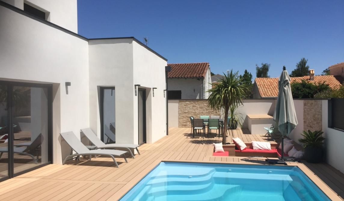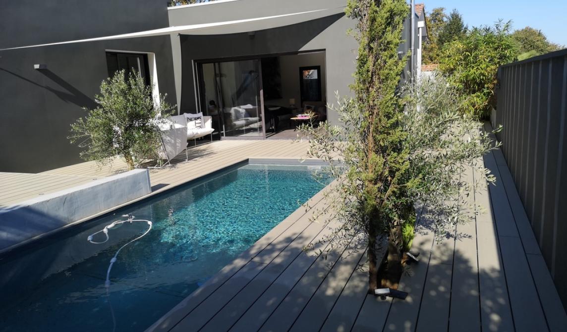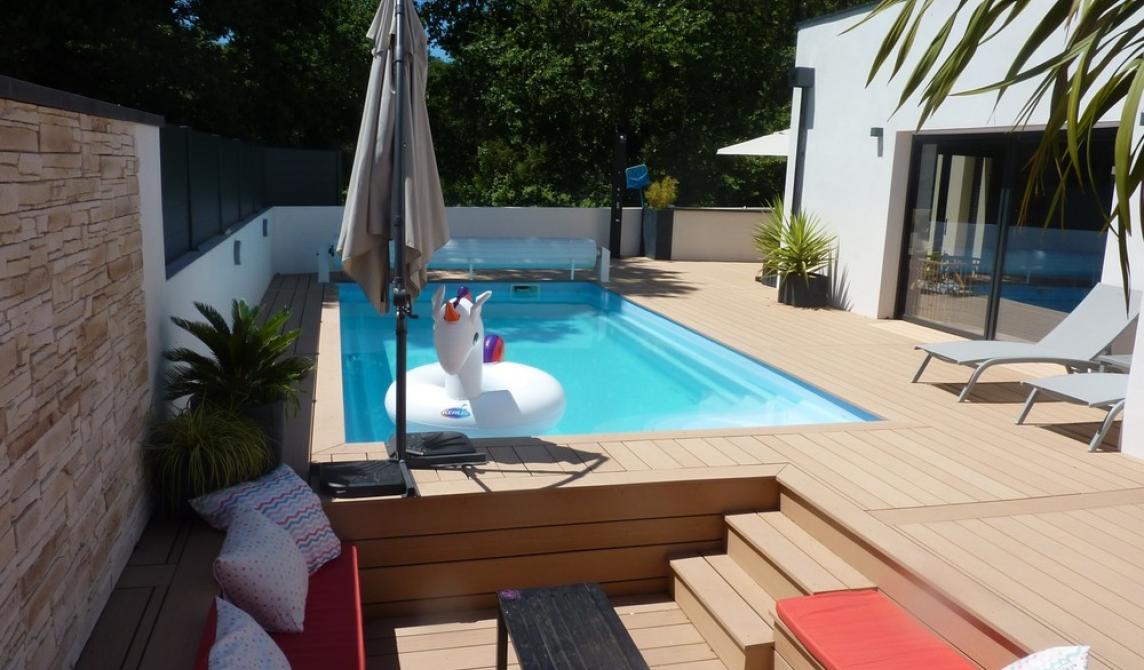 In tegenstelling tot bepaalde materialen die kunnen worden aangetast door chemische producten, zijn onze terrassen ongevoelig voor chloor, zout of andere zwembadreinigingsproducten. Deze weerstand garandeert de duurzaamheid van uw investering, zelfs in een veeleisende omgeving.