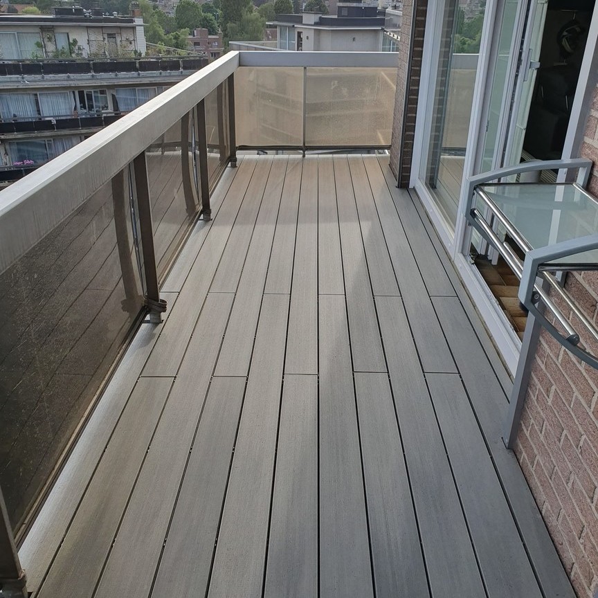 - Comfort: Zonder splinters biedt composiet hout een zachte en veilige ondergrond, ideaal om blootsvoets op te lopen, vooral op buitenruimtes zoals balkons.