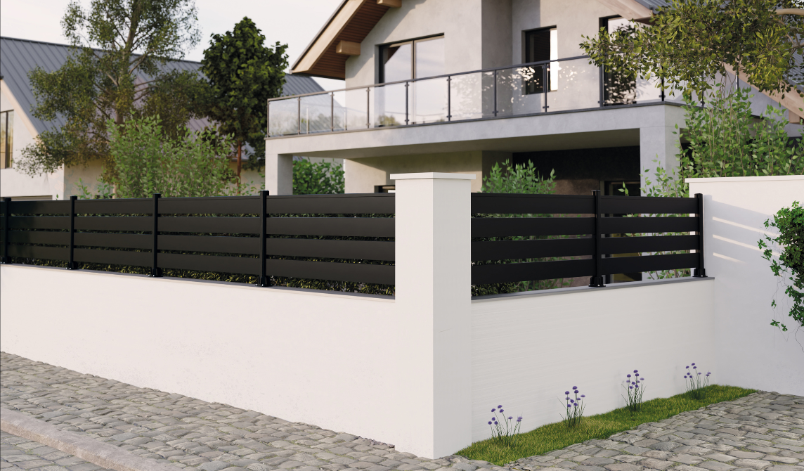 Un nouveau coloris noir, RAL 2100 mat, est disponible pour soutenir avec élégance vos clôtures composites. Ce coloris d'accessoires est particulièrement recommandé avec les lames Atmosphère gris sauvage.