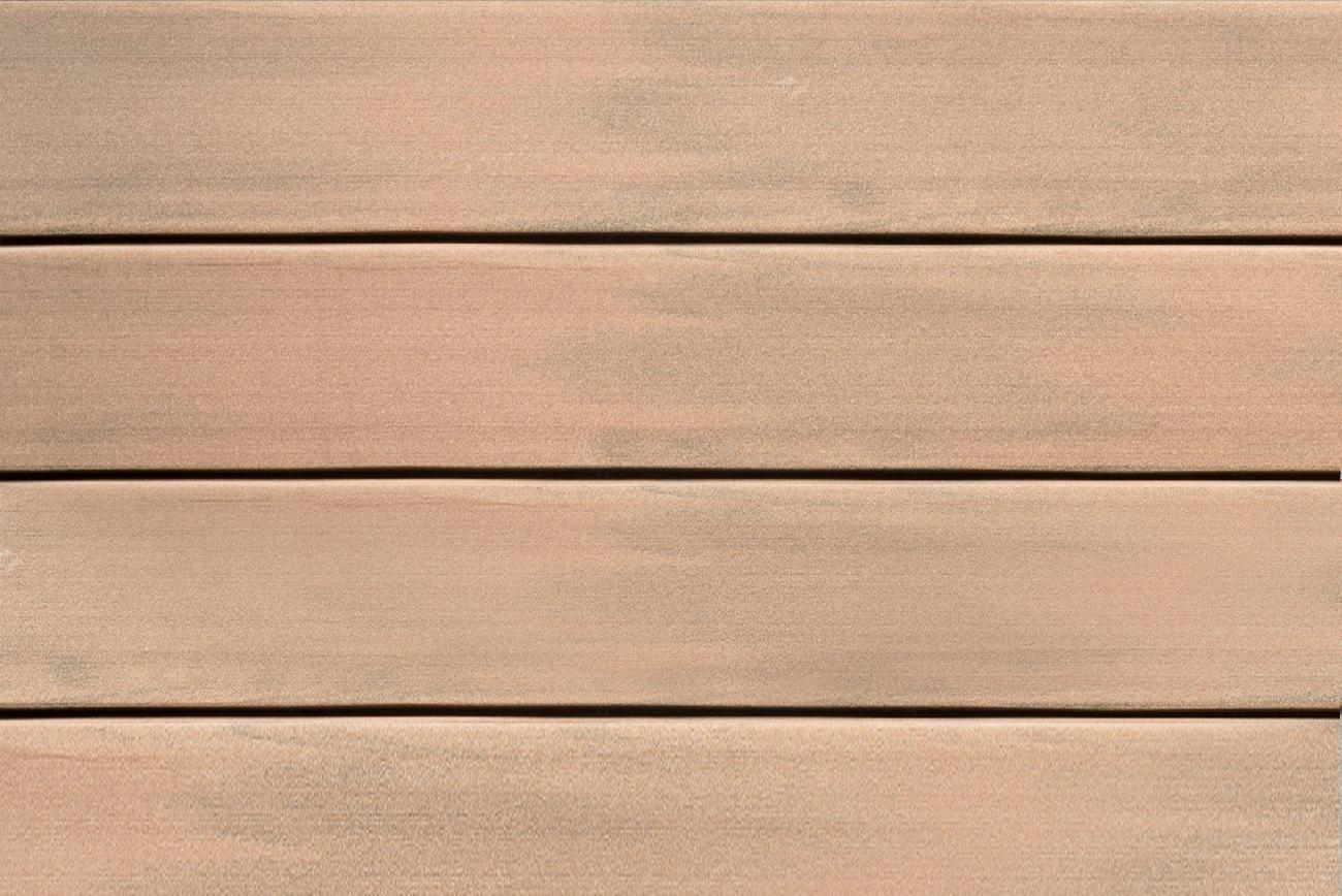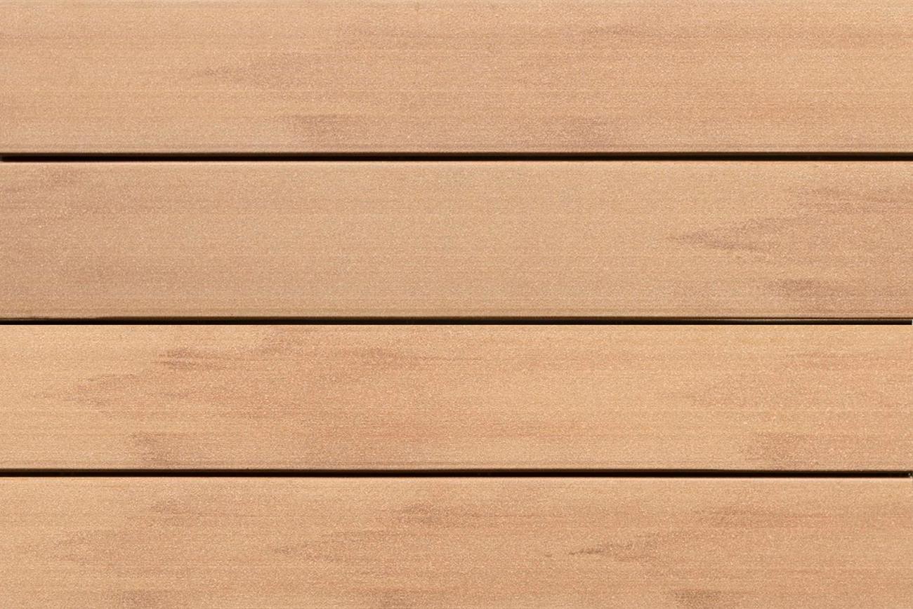 Kies Equatorbruin voor zijn exotische uitstraling. Met haar lichte kleur is de Savanebruine terrasplank van houtcomposiet ideaal om er blootvoets over te lopen. De lichtkleuren terrasplanken zijn immers zeer comfortabel en hun temperatuur onder de zon is vergelijkbaar met die van een exotische houtsoort. Dit zijn ideale planken voor de ruimte rond het zwembad. Ze zijn niet bang van chloor, zout of onderhoudsproducten voor het zwembad en bieden een zeer goede grip voor blote voeten.