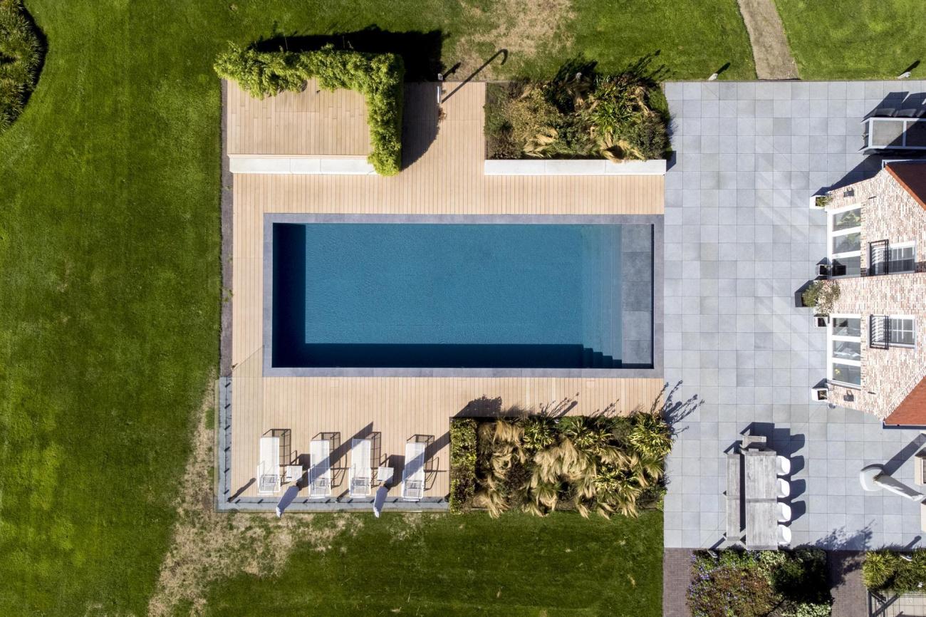 Zwembadomgeving, planken in antracietgrijs